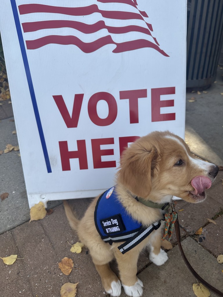 Waffles will also be introduced to a greater number of new flooring/surfaces both indoors and out, and we’ll be focussing on people-neutral behavior when wearing his training vest. He has a number of social visits planned already this week and can’t wait to meet new people in strange new places! He’s a total social butterfly, but is very handler-focussed — that’s the best of both worlds!
