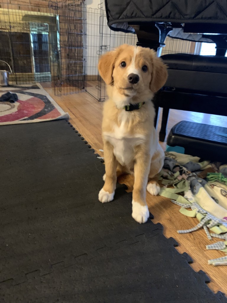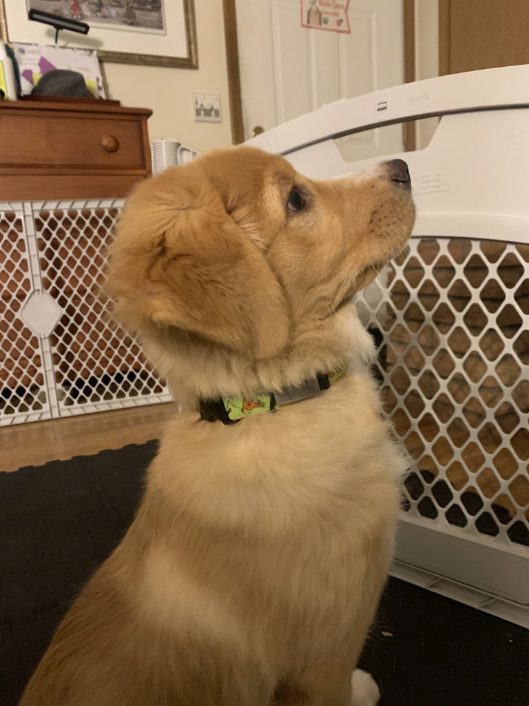 We’re making steady progress on distraction work and focus. Waffles is very toy-motivated and food-motivated, so that helps tremendously. Overall, he’s just a very happy guy! We’re really looking forward to being able to go on real neighborhood walks. Out of an overabundance of caution, he’s been restricted to safe places, the yard, and school as there have been cases of parvo in our area and in neighboring counties.