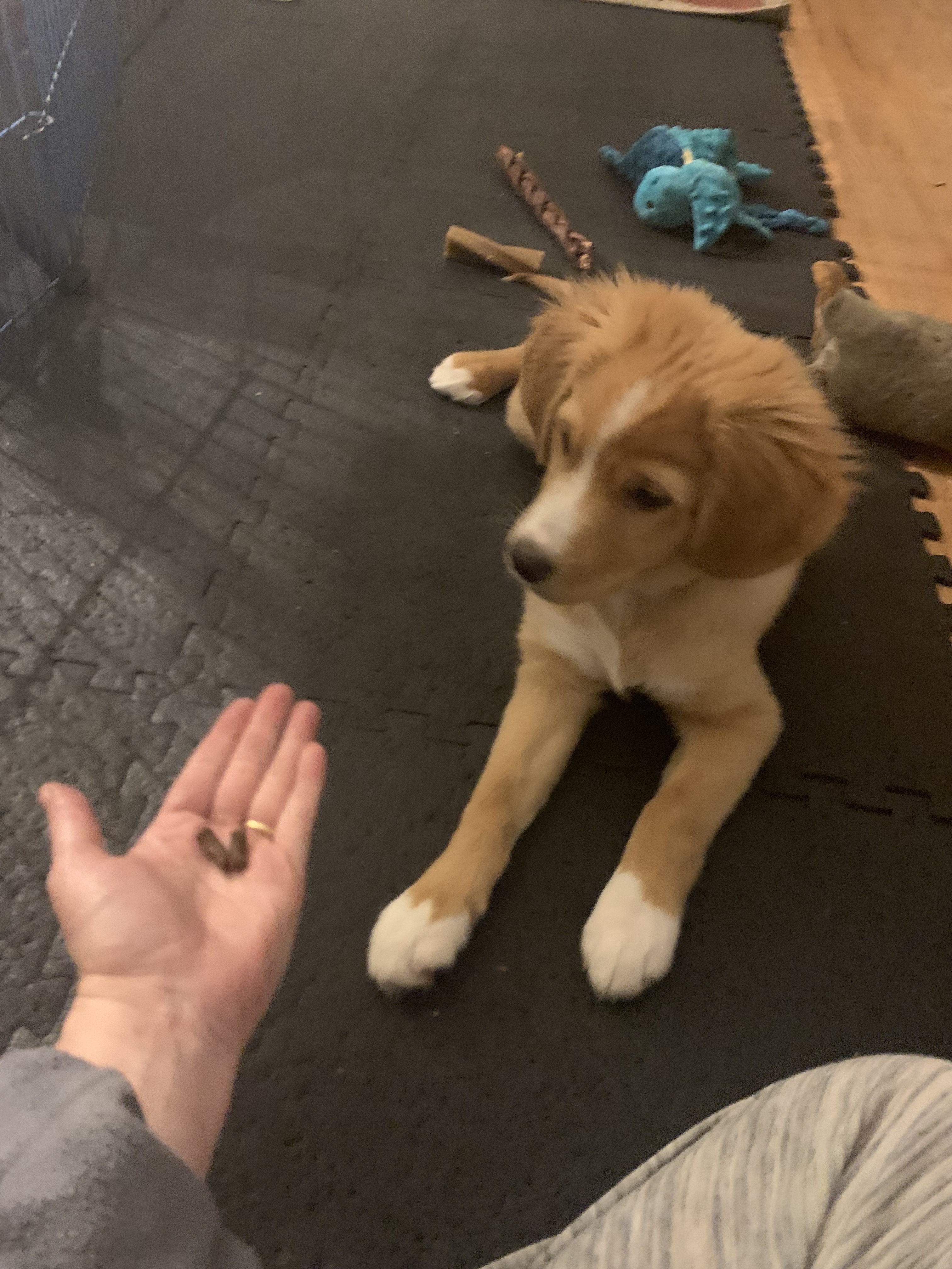 This week has seen a lot of consolidation work and bite inhibition work. Waffles continues to be a very good boy and his chompiness is improving.