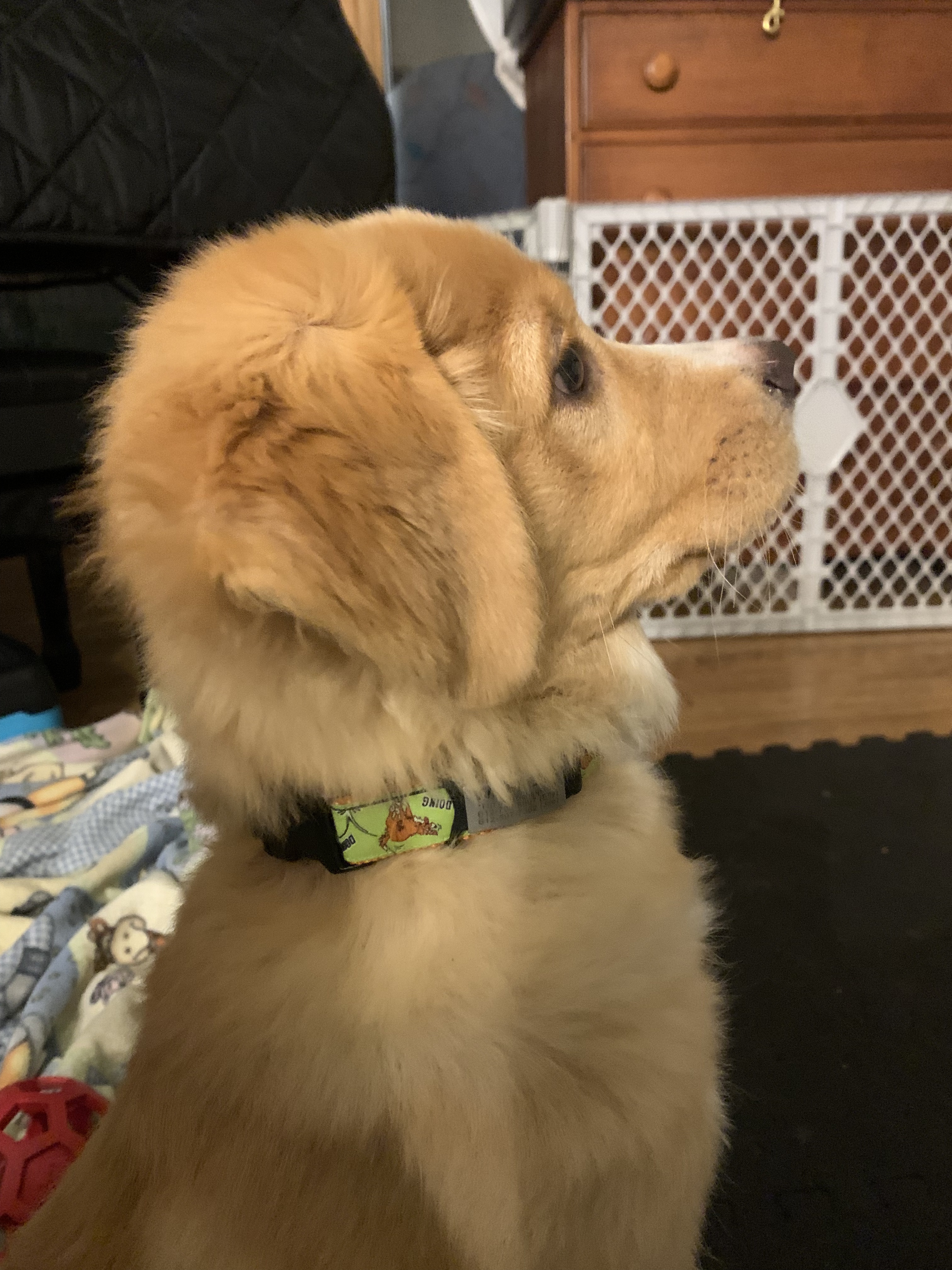 He’ll also be working in earnest on communication button cues this week, shifting from passively learning to actively using the cues himself — this is an exercise in frustration tolerance in its own right! He’ll still work with “Outside”, “Play”, and we’ll be adding “All Done”, “Train”, and “Yard”. We’ll document how it goes!