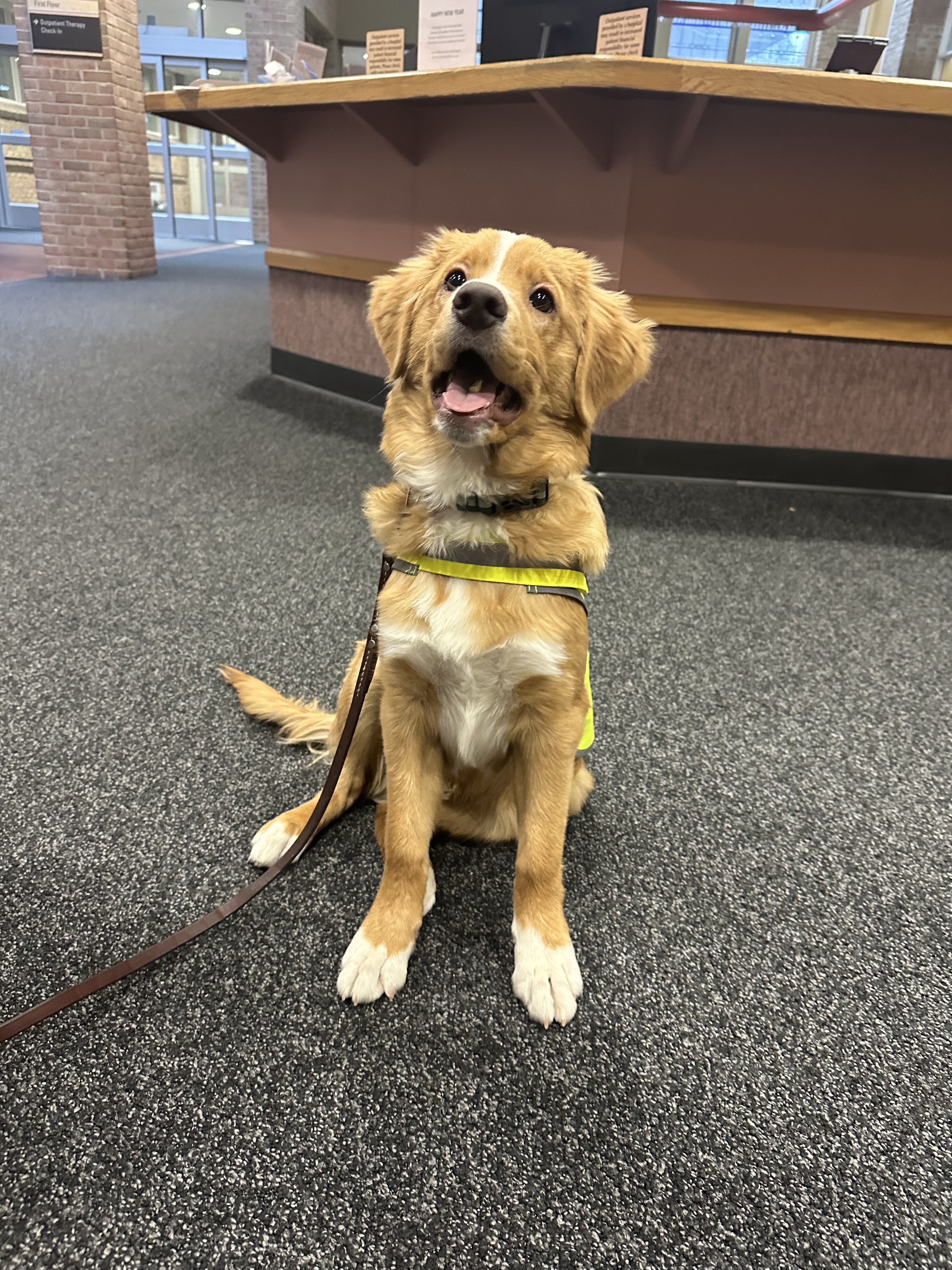 Real world example: Yesterday, Waffles and I did some indoor training at the rehabilitation institute. Waffles absolutely loves people and really wants to greet everyone when he should be heeling and walking on a loose leash instead. So we walked up and down hallways, and every time someone was coming towards us, I would count 1…2..3! The closer people got, the faster I’d count. Within five minutes, he was ignoring every person we were crossing paths with, walking on a totally loose leash, even ignoring wheelchairs and other distracting things coming his way. I started slowing down my counting instead of speeding up as someone approached, and he was so keenly awaiting the three that he would completely ignore the distraction. The goal here isn’t to make a dog dependent on treats for good behavior. It’s simply teaching him that distractions such as people or other dogs walking by are simply not that interesting. First off, you don’t get to greet them when you’re working anyway, and if you’re actually doing your job, that’s way more fun. For adolescent dogs, reinforcement where they don’t even have to do anything is like when your history teacher used to wheel in the TV and VRC cart (yes, I’m old) on a Friday afternoon. It’s fun, it’s low effort, and they accidentally learn stuff. I fade these sorts of games over time as my dogs build up impulse control and age out of adolescent behaviors, but they’re a handy tool to keep in your back pocket when you take your dog somewhere new and exciting and want to keep them focussed on you.