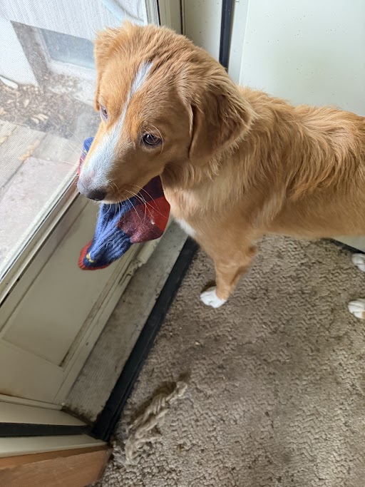 - Embrace their quirks. Not everything has to be a battle. Pick yours wisely. Use your puppy’s quirks to your advantage. For example, Waffles likes to escape to the basement and raid the laundry room before going outside. It’s a house layout issue. His quirk? He raids for a single sock and runs back upstairs with it before going out. So now I just leave old, lone socks for him at the base of the stairs, send him down to get one, and use this as a way to reinforce the “go get” and “give” commands multiple times every day. That way he leaves the good socks alone and learns something. at the same time.